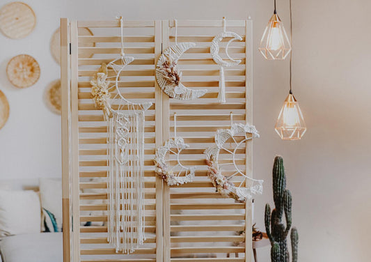 Makramee Mond Wandbehang mit Trockenblumen