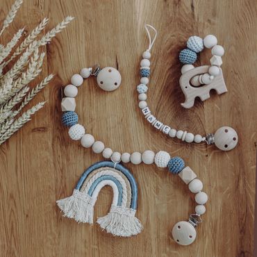 Set Kinderwagenkette, Schnullerkette und Greifring