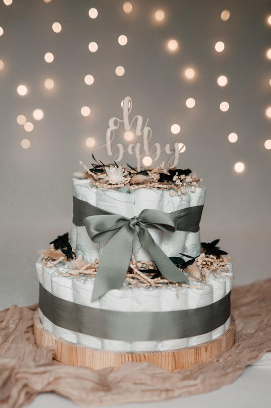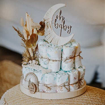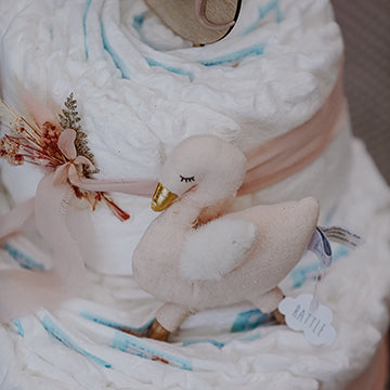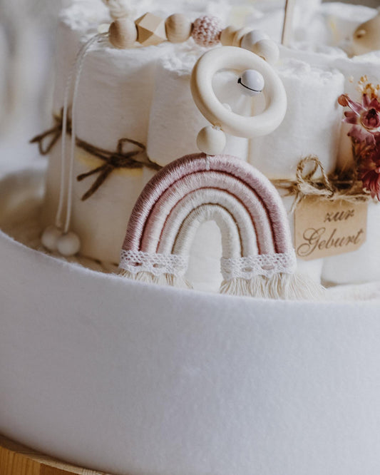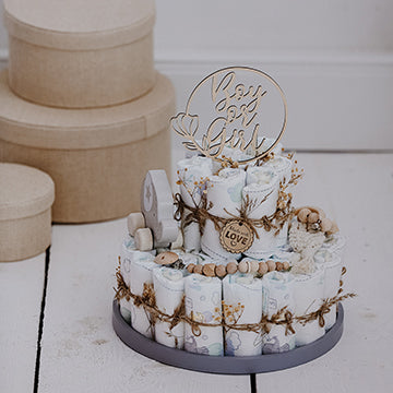 Windeltorte mit Trockenblumen und Taschenwärmer Fuchs